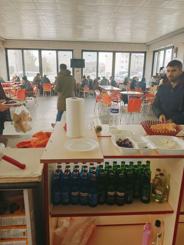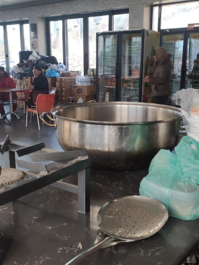 Ein Team berichtet davon, dass sie heißen Tee, Kaffee und Essen in einer Krankenhauscafeteria verteilen. Zelte werden dringend benötigt, sind jedoch kaum verfügbar. Sie haben deshalb auch eine Werkstatt aufgemacht, in der sie selbst mobile Notunterkünfte produzieren. Diese Shelter gibt es in zwei Größen, sie können mit einem Ofen ausgestattet werden.